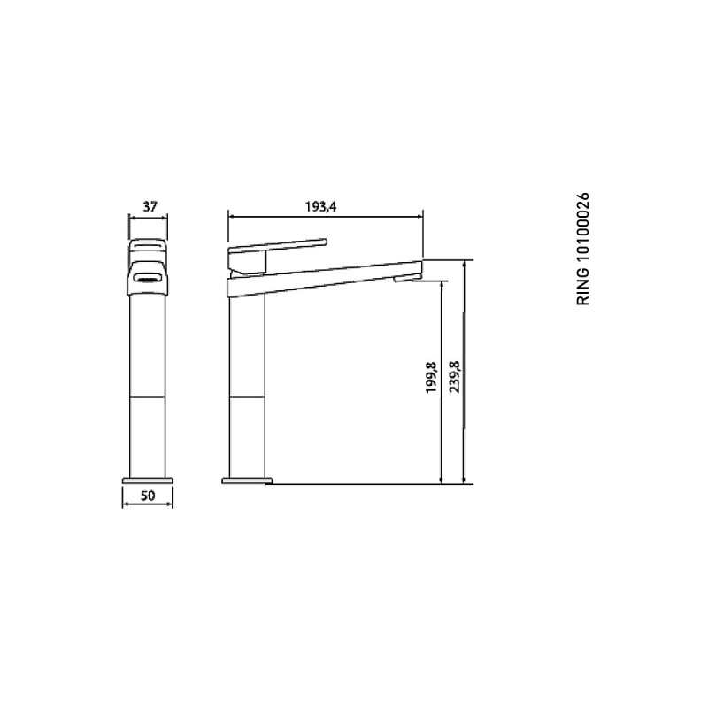 - Высота смесителя: 240 мм