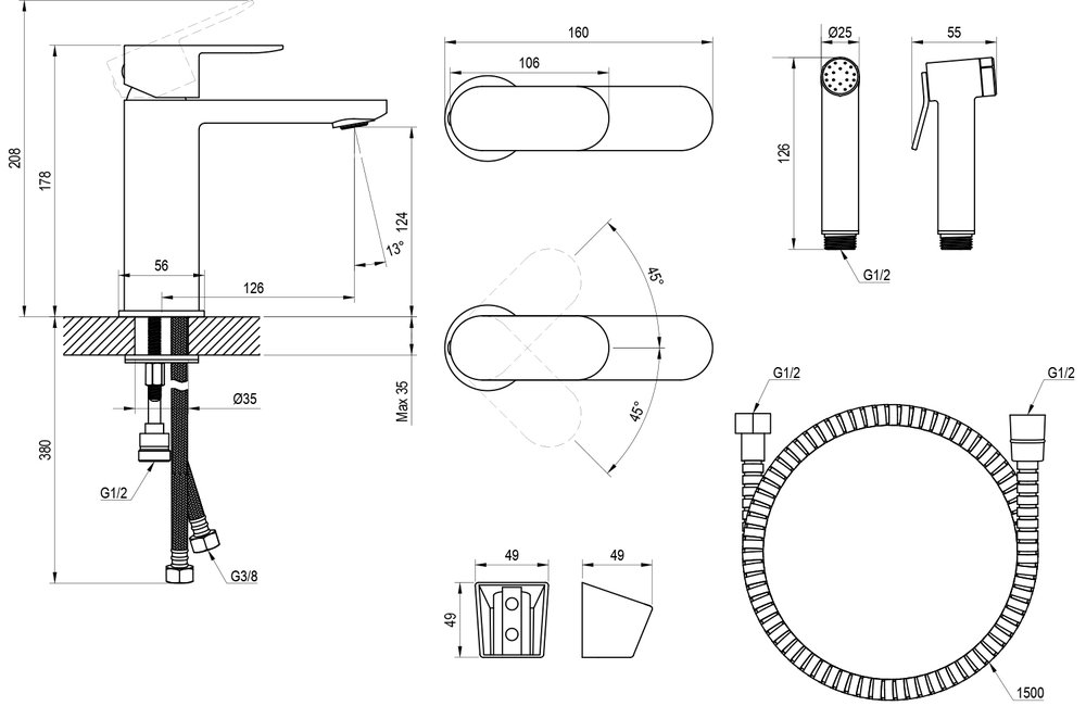 Смеситель для раковины Ravak Chrome II однорычажный с гигиеническим душем хром X070450