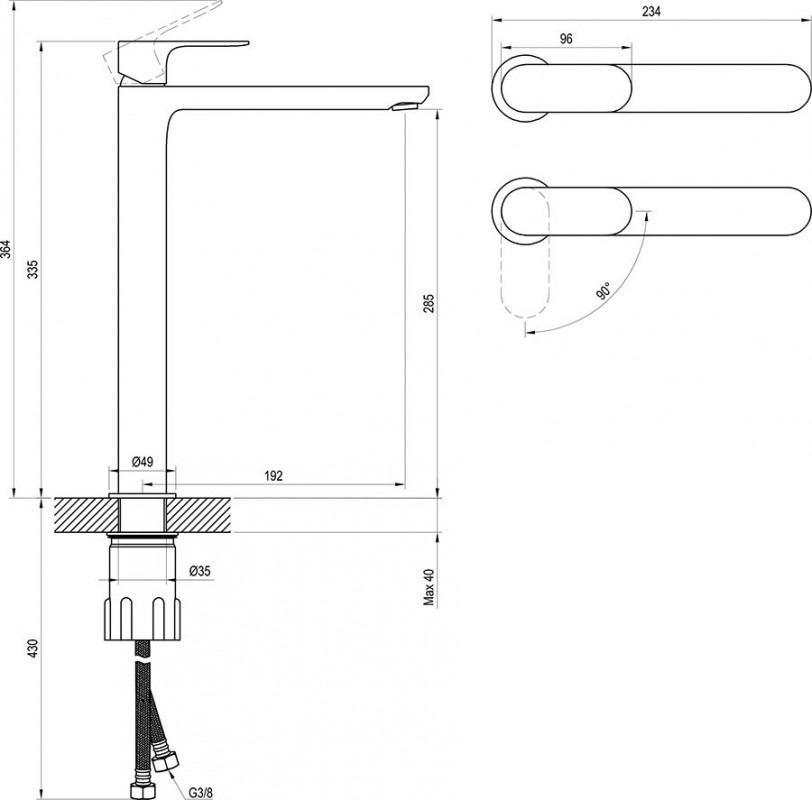 В центральном положении вода не смешивается без необходимости, как в стандартных смесителях для раковины, а подача горячей воды осуществляется только поворотом рычага влево.