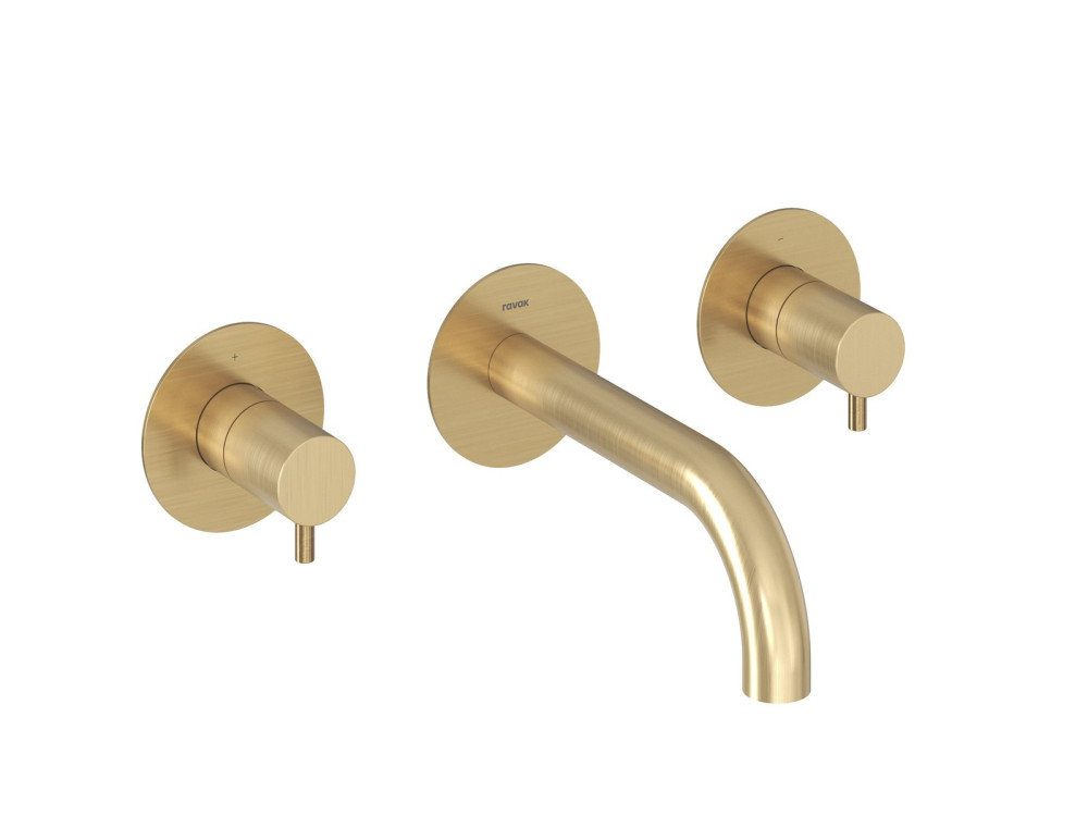 Смеситель для раковины Ravak Espirit настенный двухрычажный золото матовое X070600