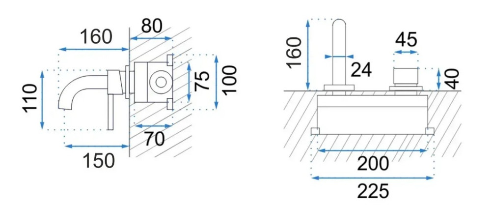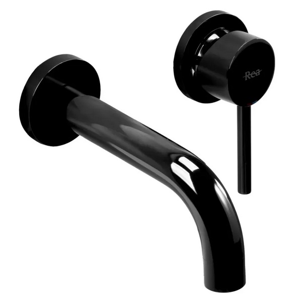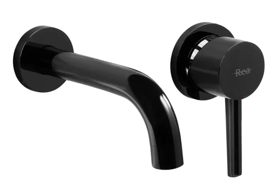 Смеситель для раковины Rea Lungo настенный однорычажный черный глянцевый REA-B4421