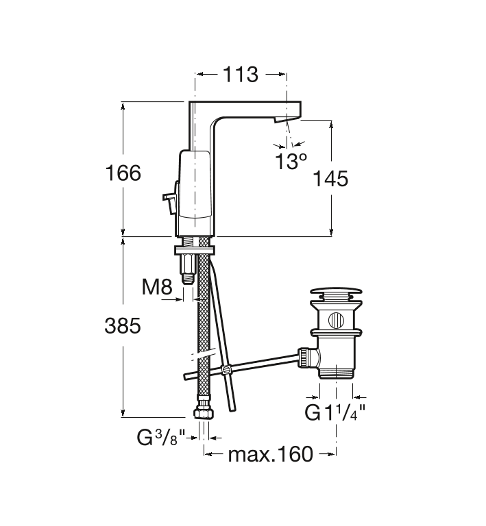 1) Смеситель для раковины Roca L90 с боковым рычагом и донным клапаном