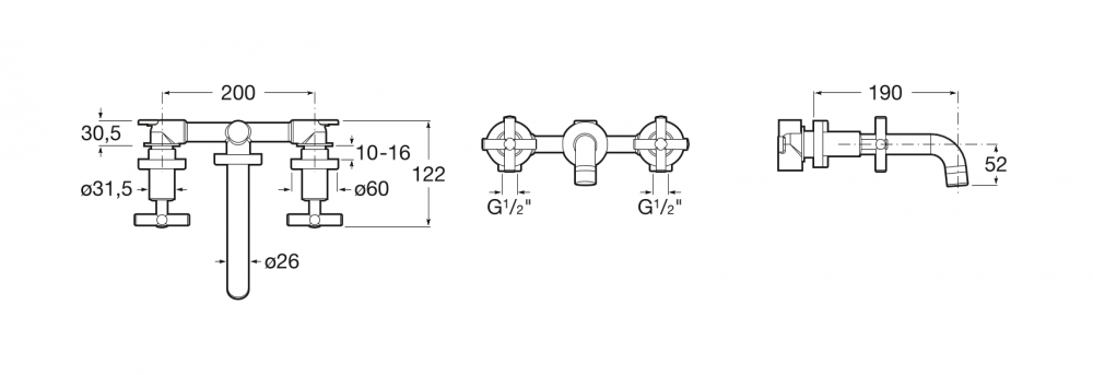 Встраиваемый смеситель для раковины Roca Loft двухвентильный настенный