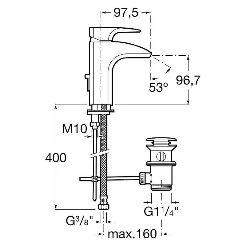Смеситель для раковины Roca Thesis с гидрозатвором хром A5A3050C00