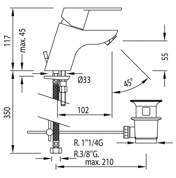 1) Смеситель для раковины Tres BM-Tres однорычажный хром
