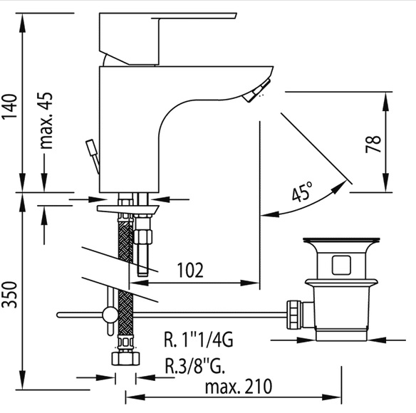 1) Смеситель для раковины Tres BM-Tres однорычажный хром