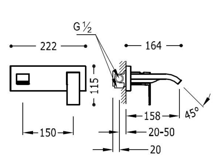 Строгие кубические формы и модернистический дизайн вот основные отличительные элементы серии смесителей Cuadro от компании Tres. Смеситель для раковины Cuadro-Tres имеет конструкцию для настенного, встраиваемого монтажа, такой способ позволит сэкономить занимаемое пространство. Смеситель устанавливается на одну пластину. Керамический картридж установленный в рычаг смешивания и аэратор помогут сэкономить воду не теряя при этом качества напора. Выполнен из латуни и покрыт хромом. Излив имеет 158мм в длину, а высота регулируется в зависимости от высоты монтажа.