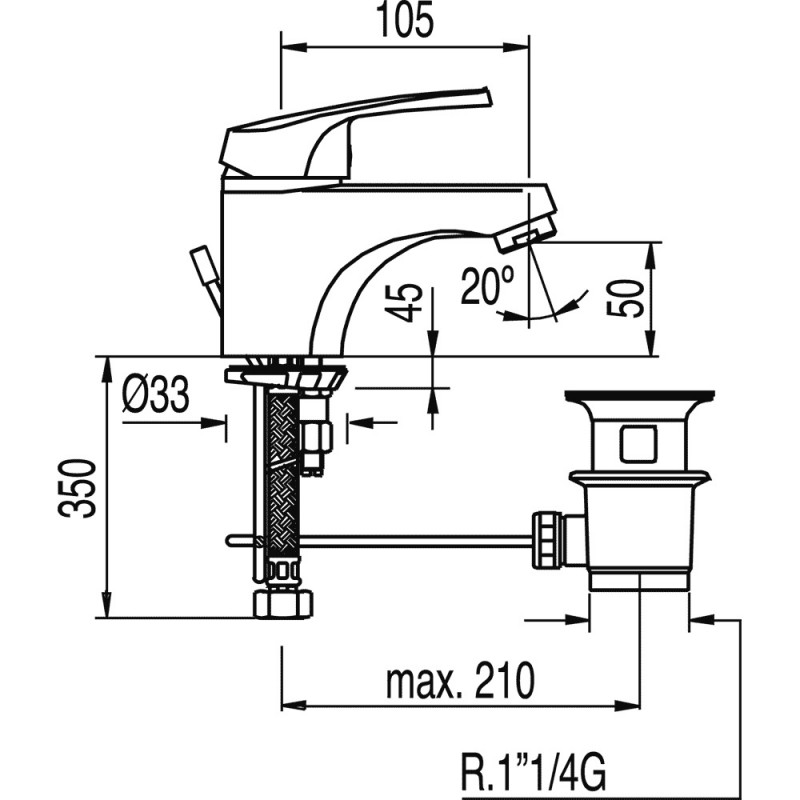 Тип подвода: гибкие подводы 350 мм