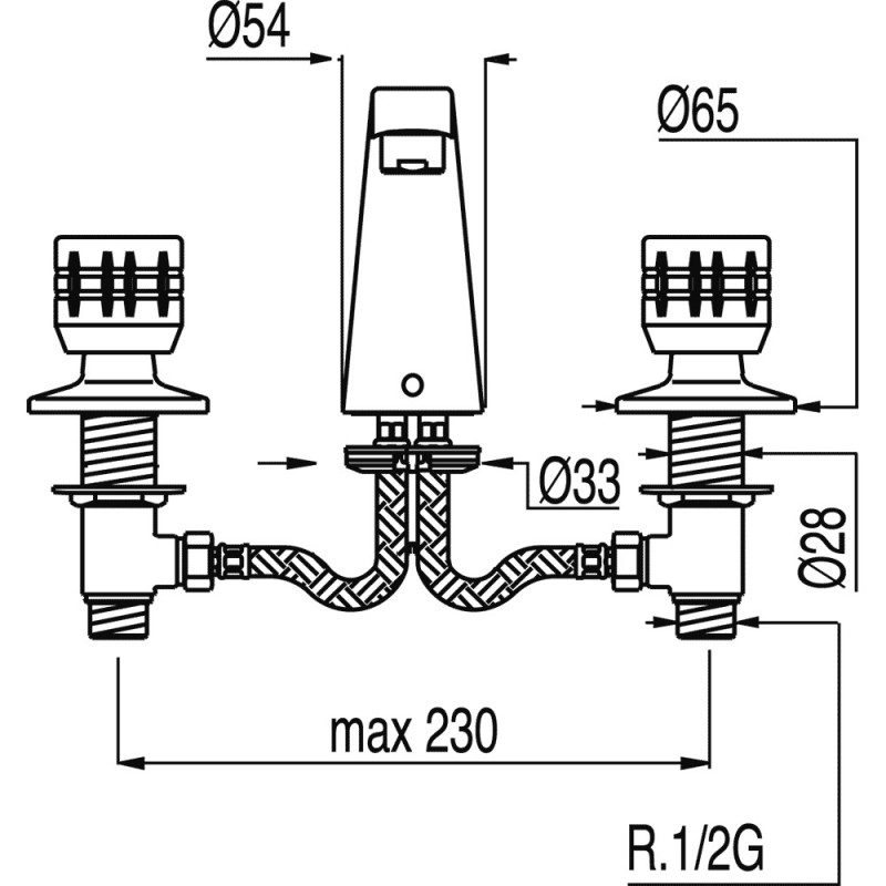 Смеситель для раковины Tres Ese-23 двухвентильный монтаж на 3 отверстия хром 123105