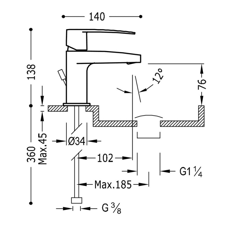 Смеситель для раковины Tres Flat-tres однорычажный с донным клапаном хром 20410301D