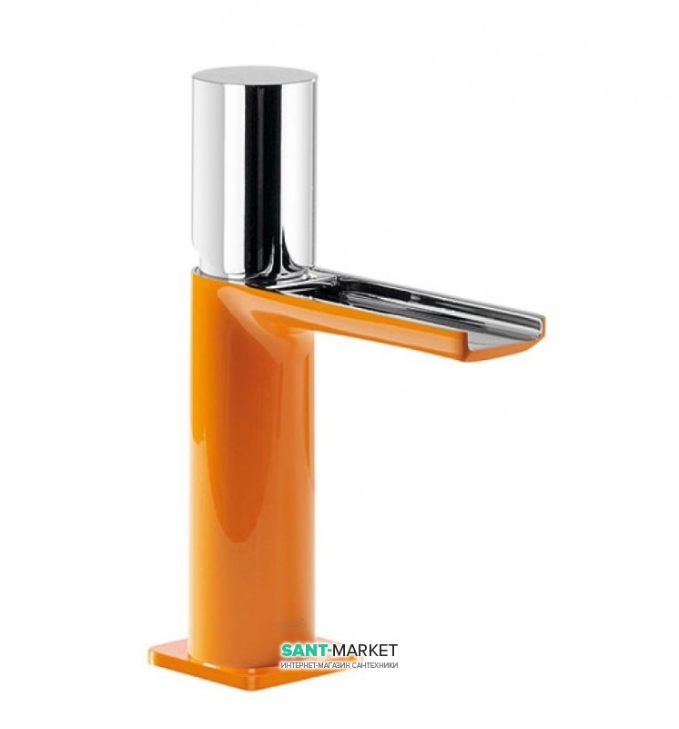 1) Смеситель для раковины Tres Loft colors однорычажный с открытым каскадным изливом апельсиновый/хром