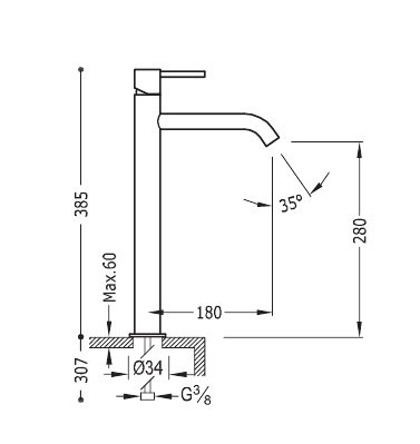- Высота смесителя, мм: 385