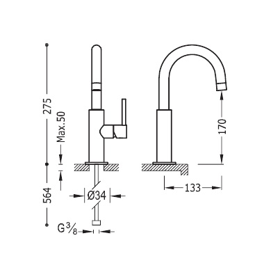- Высота смесителя, мм: 275
