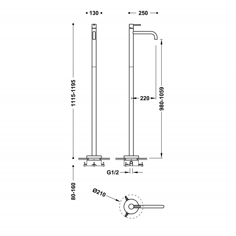 - Высота струи, мм: 980-1059
