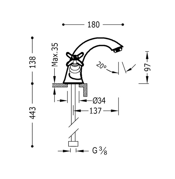 Смеситель для раковины Tres Tres-Clasic color двухвентильный состаренная латунь