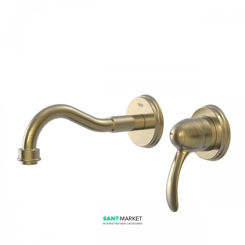 1) Смеситель для раковины Tres Tres-Clasic однорычажный настенный состаренная латунь