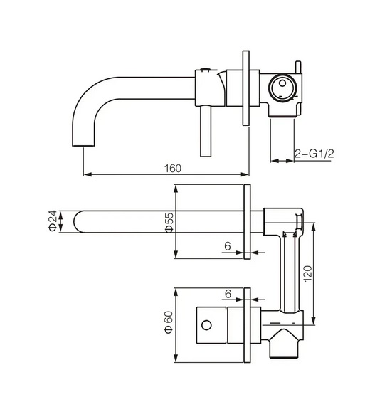 Смеситель для раковины VBI Milano скрытого монтажа однорычажный графит VBI-050102GR