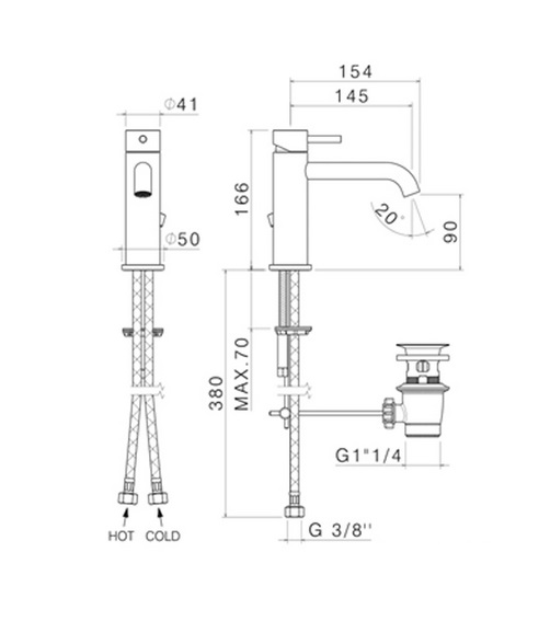 1) Смеситель для раковины Vema Tiber steel с донным клапаном нержавеющая сталь