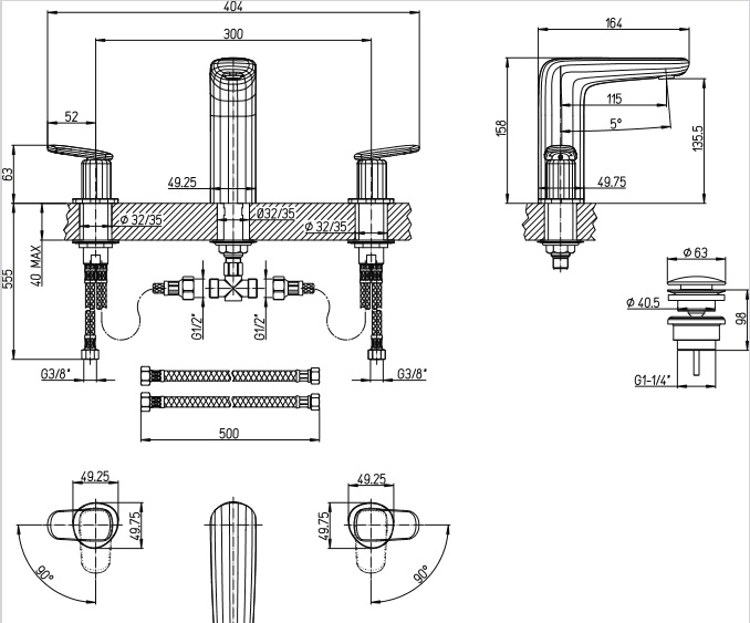 Смеситель для раковины Villeroy & Boch Antao на 3 отверстия хром TVW11100100061