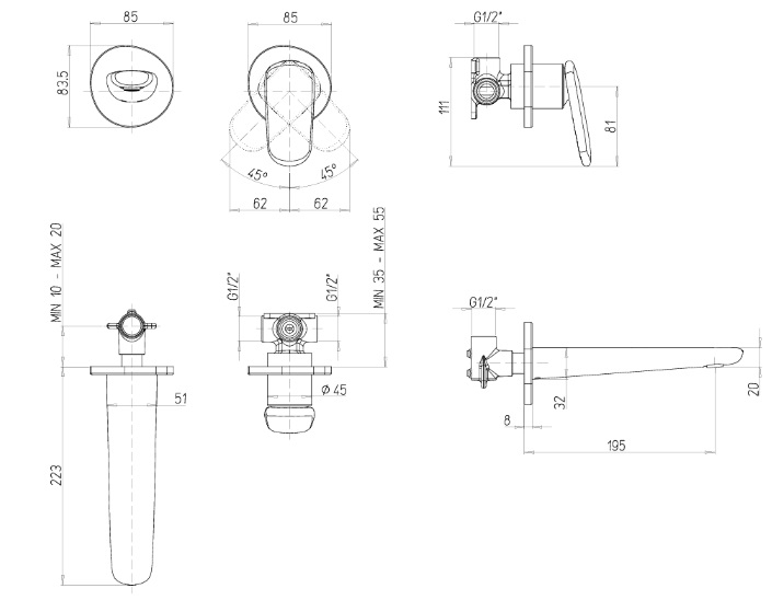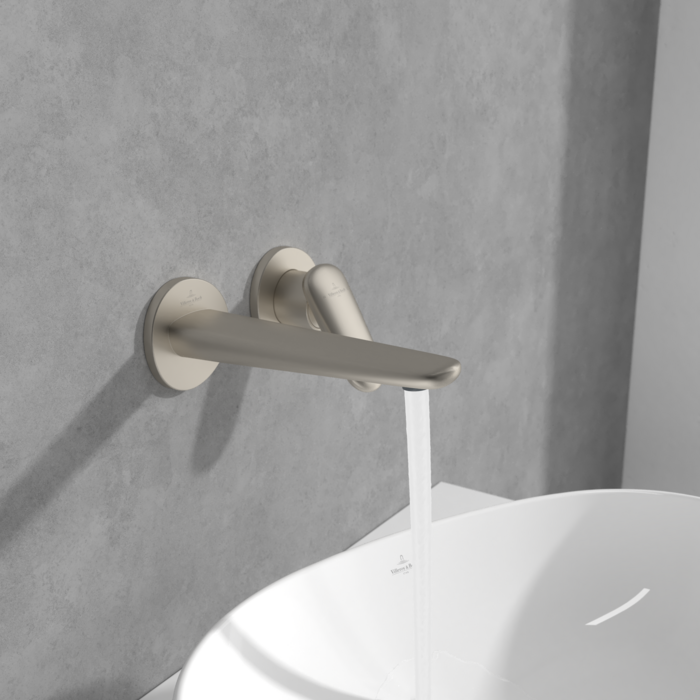 Смеситель для раковины Villeroy & Boch Antao настенный на 2 отверстия матовый никель TVW11100200064