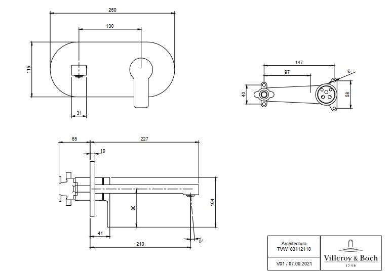 Смеситель для раковины Villeroy & Boch Architectura настенный однорычажный хром TVW10311211061