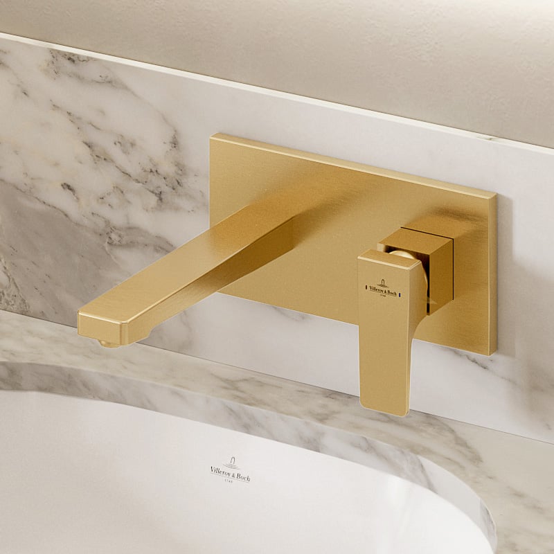 Смеситель для раковины Villeroy & Boch Architectura Square настенный однорычажный матовое золото