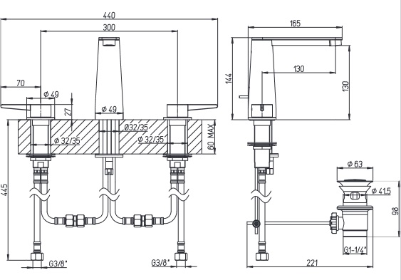 Смеситель для раковины Villeroy & Boch Conum на 3 отверстия матовый никель