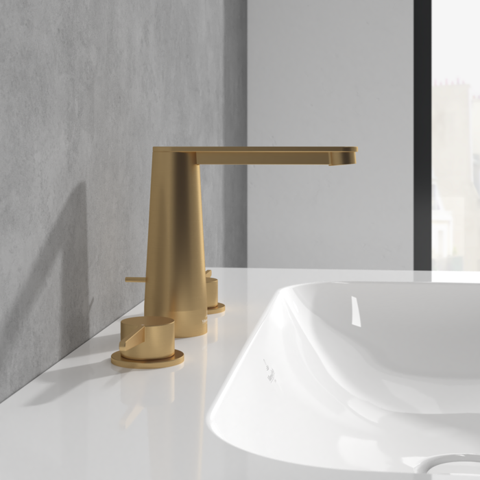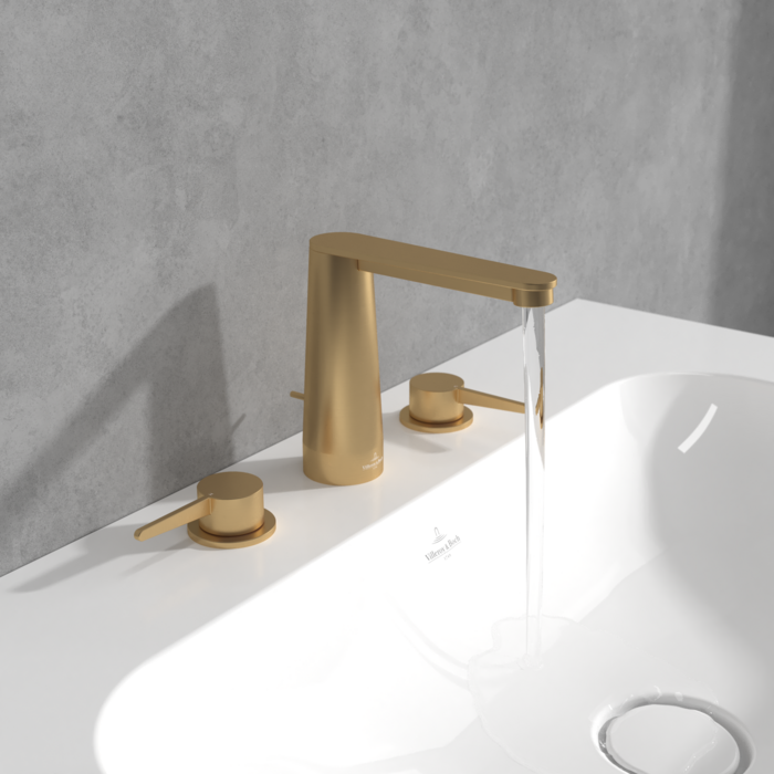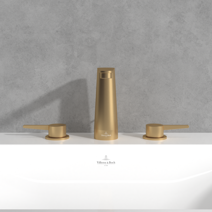 Смеситель для раковины Villeroy & Boch Conum на 3 отверстия матовое золото