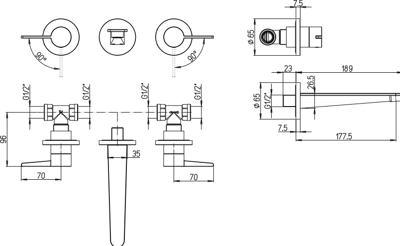 Смеситель для раковины Villeroy & Boch Conum настенный на 3 отверстия хром TVW12700200061