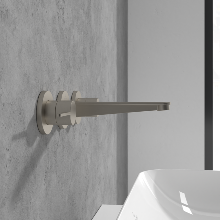 Смеситель для раковины Villeroy & Boch Conum настенный на 3 отверстия матовый никель TVW12700200064