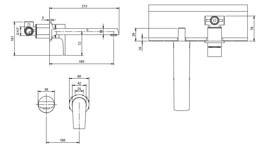 Смеситель для раковины Villeroy & Boch Liberty настенный однорычажный хром TVW10700800061