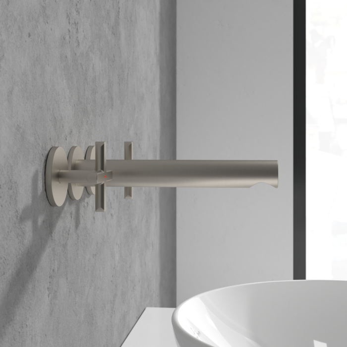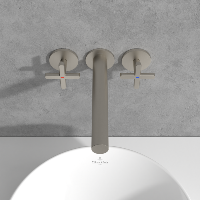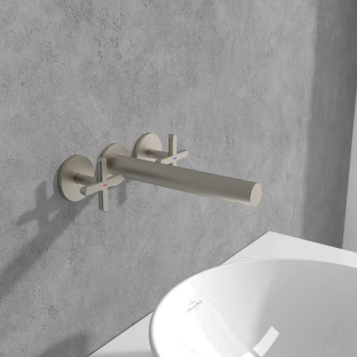 Смеситель для раковины Villeroy & Boch Loop & Friends настенный на 3 отверстия матовый никель TVZ10601200064