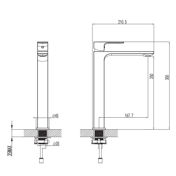 1) Смеситель для раковины высокий Volle Leon однорычажный латунь хром