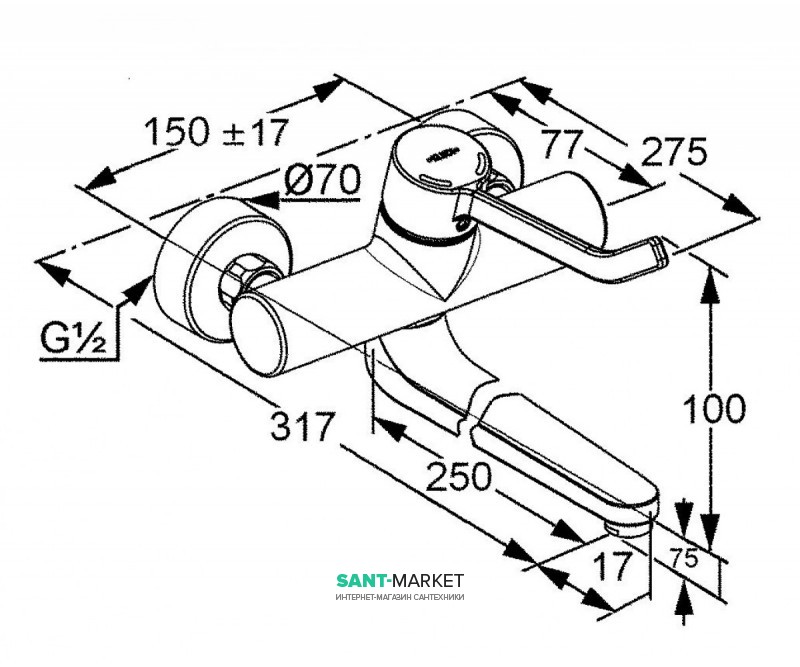 Смеситель для раковины однорычажный настенный без рычага Kludi коллекция Provita хром 335360500