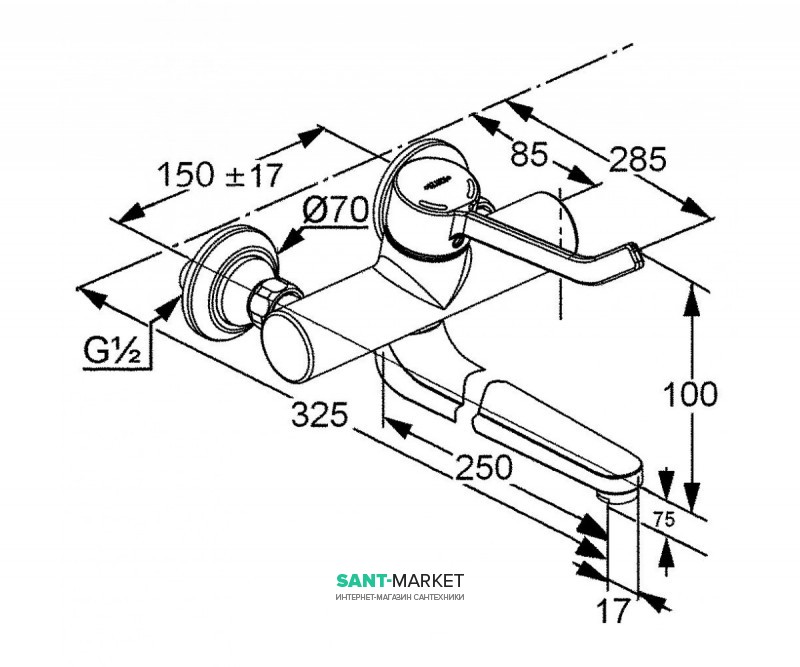 Смеситель для раковины однорычажный настенный без рычага Kludi коллекция Provita хром 335370500