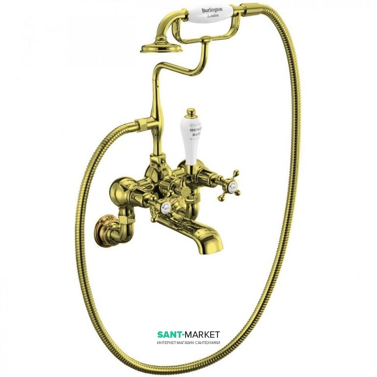 Смеситель для ванны Burlington CLR17 GOL с ручным душем, 1/4 оборота, цвет золото.