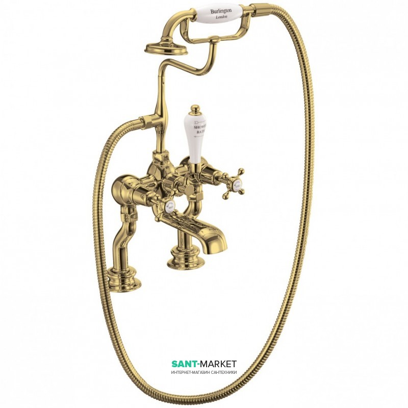 Смеситель для ванной Burlington Regent двухвентильный с ручным душем золото CLR15 GOL