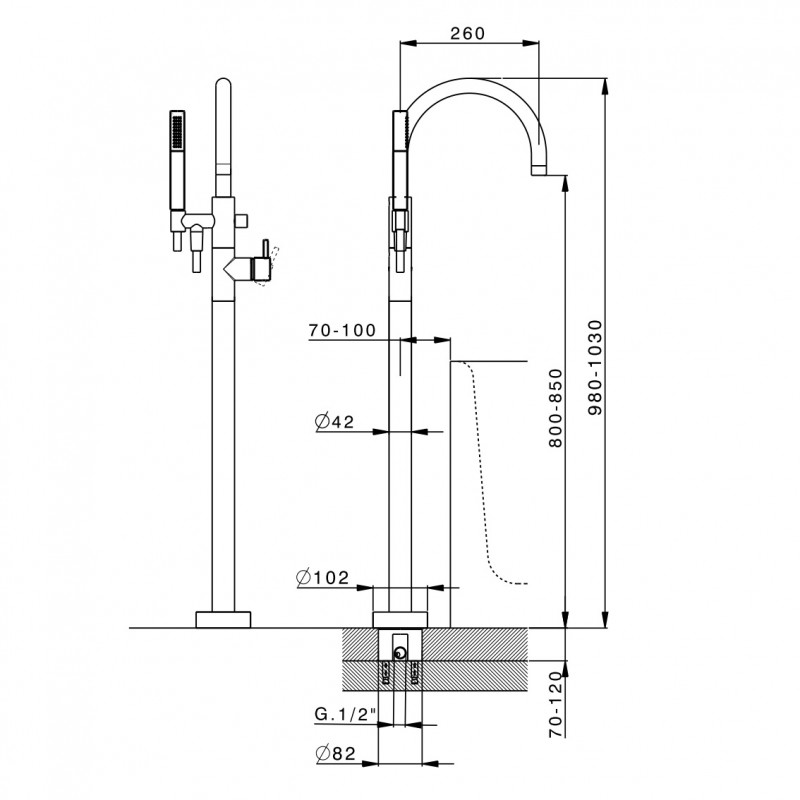 1) Смеситель для ванной Devit Art напольный однорычажный латунь/пластик черный матовый