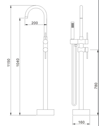 1) Смеситель для ванной Devit напольный однорычажный латунь хром