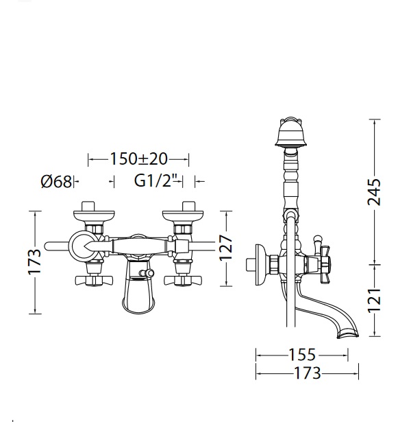 Смеситель для ванной Eurorama Orientes с душевым гарнитуром хром 402ORC