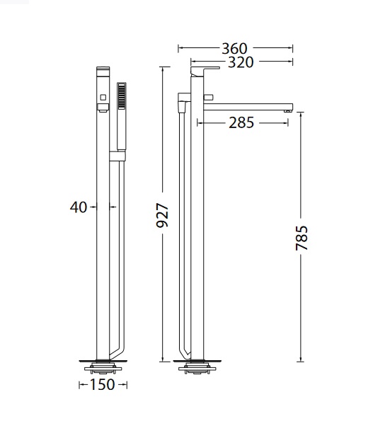 1) Смеситель для ванной Eurorama Quale напольный с душевым гарнитуром хром
