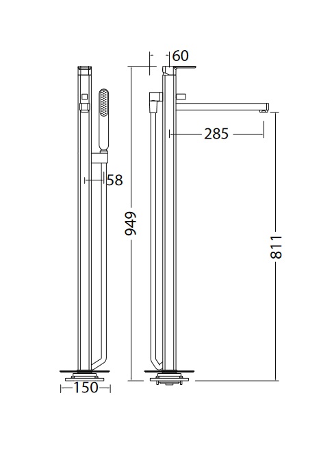 1) Смеситель для ванной Eurorama Tono напольный с душевым гарнитуром хром