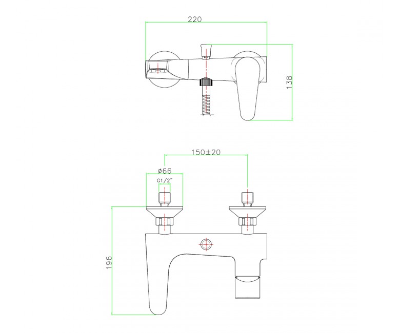1) Смеситель для ванной Fiore Kera однорычажный латунь хром