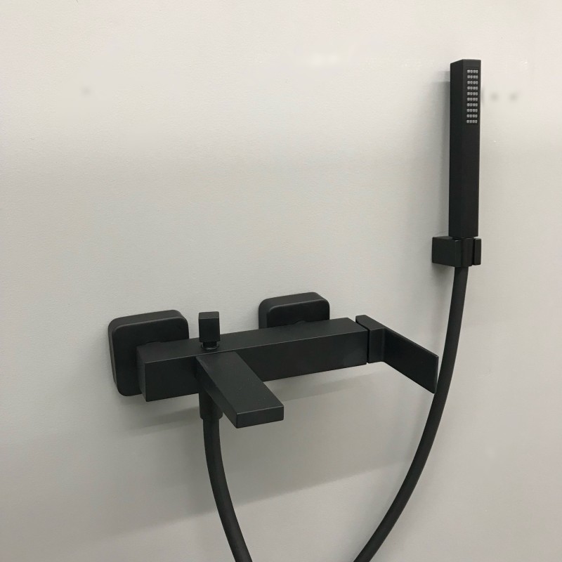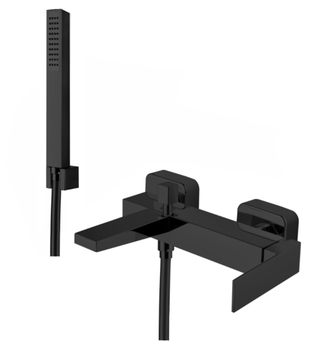 Смеситель для ванной Fiore Kube с лейкой и шлангом чёрный матовый