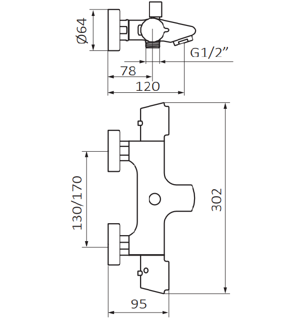 Смеситель для ванной GRB Winner термостатический с душевым гарнитуром хром 44452440
