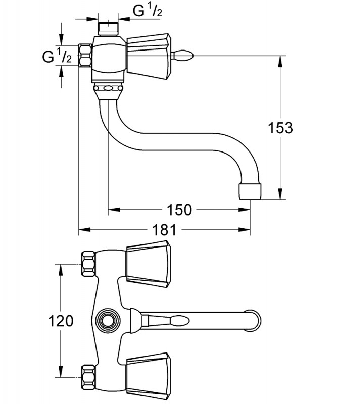 1) Смеситель для ванной Grohe Costa Trend двухвентильный хром