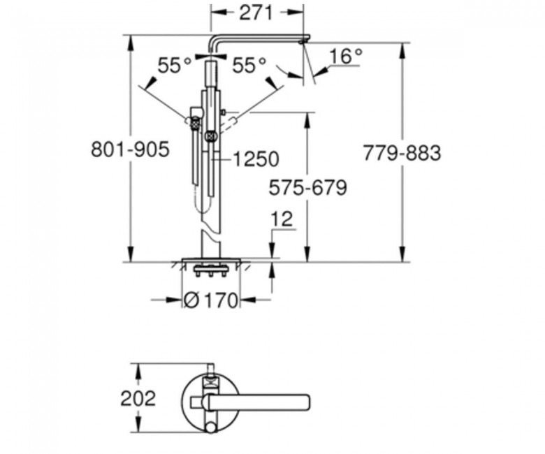 1) Смеситель для ванной Grohe Lineare напольный однорычажный матовый никель