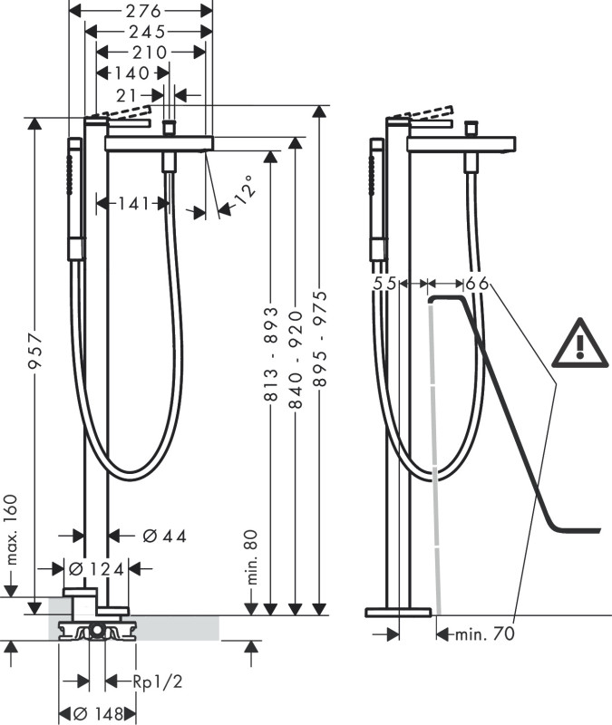 Смеситель для ванной Hansgrohe Finoris напольный с душевым гарнитуром бронза матовая 76445140