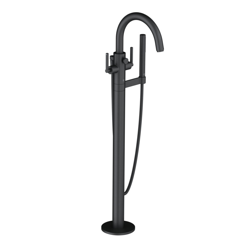 Смеситель для ванной Kludi Nova Fonte напольный с душевым гарнитуром черный матовый 205903915
