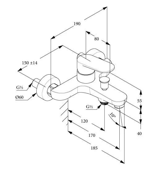 - однорычажный смеситель для ванны и душа